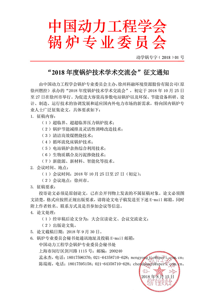 2018年锅炉专委会会议征文通知
